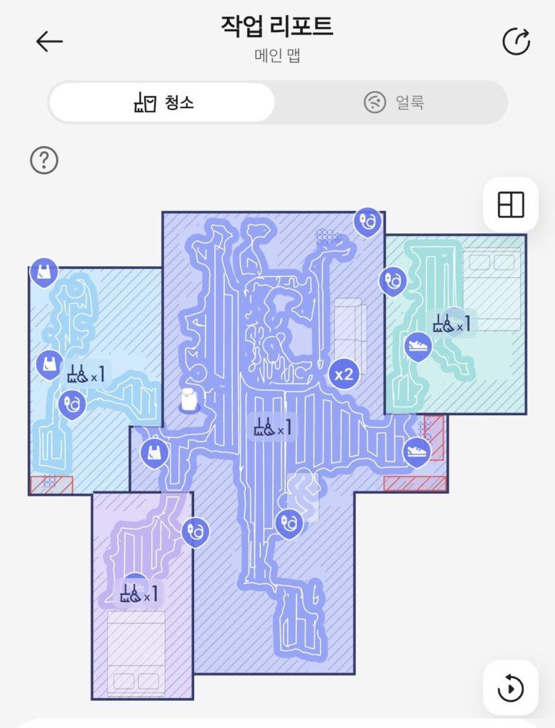 앱을 통해 쉽게 조작할 수 있고 문제가 있으면 앱에서 알림이 푸쉬된다. 그리고 소모품의 교체 주기도 쉽게 확인할 수 있다. 앱에서 현재 청소기가 어느 방을 청소하는지 위치를 알 수 있고 어떤 장애물이 있는지도 파악가능하다.